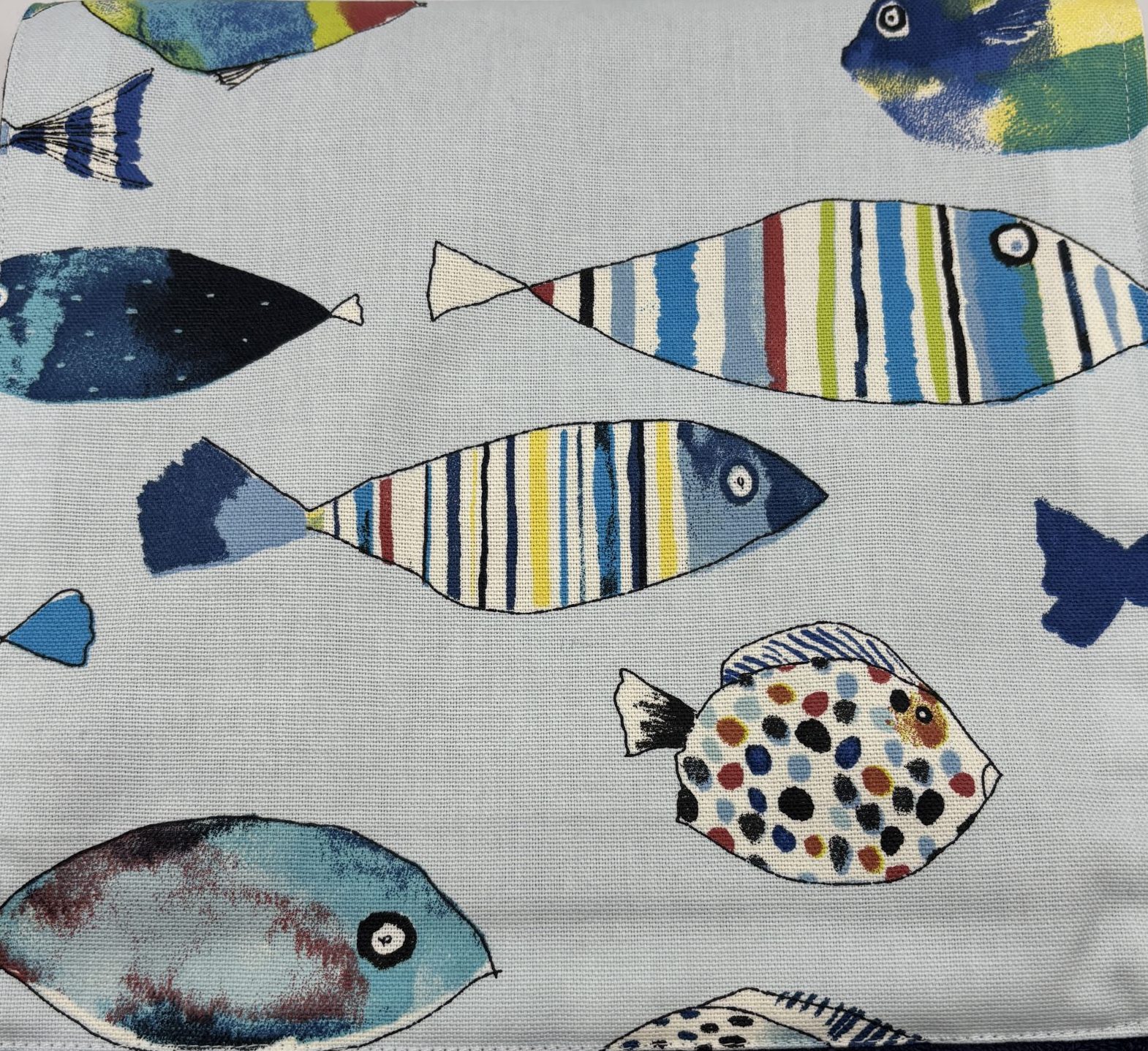Roller Towel in Fish Design in Pale Blue on navy towelling