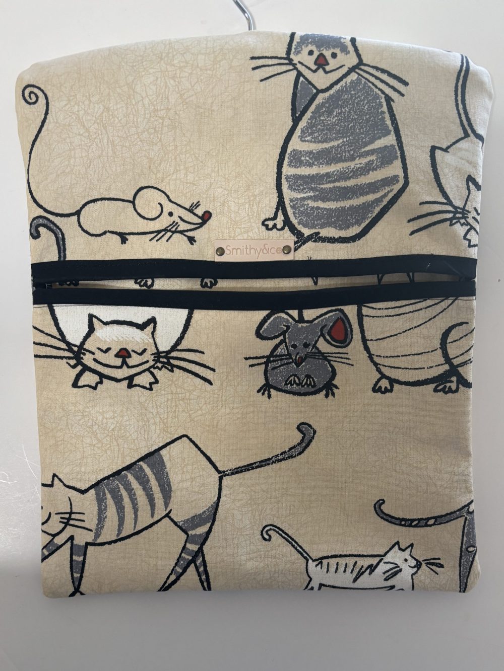 Peg bag in Cat and Mouse fabric. Made of two layers of fabric for extra strength, in 100% cotton.